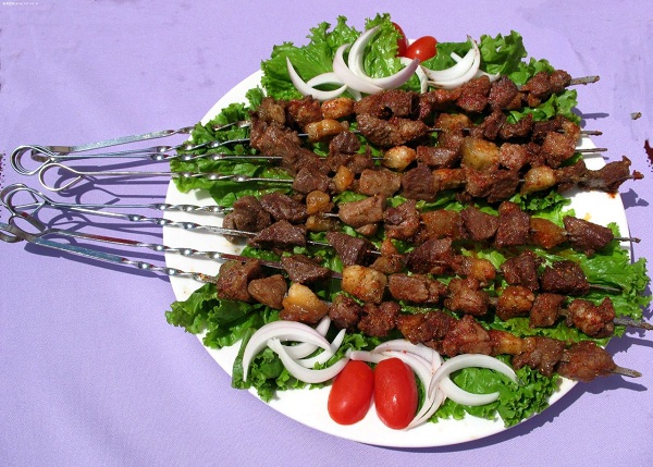 Mutton skewers are piled up on tables at almost every farmer’s market in Xinjiang. The skewers of lamb meat are a special street snack in Xinjiang. The skewers are typically sprinkled with a mix of spices that includes cumin and hot chili flakes.