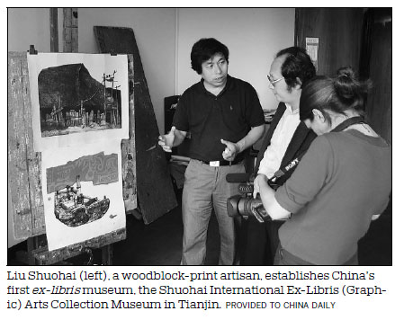 This is thanks to Liu Shuohai, a 64-year-old local woodblock-print artisan and the founder of China's first ex-libris museum, the Shuohai International Ex-Libris (Graphic) Arts Collection Museum in Hangu.