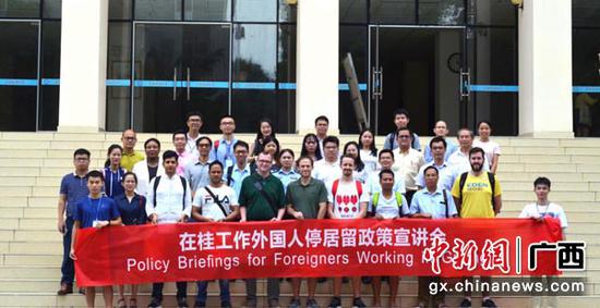 A leader of the foreigner management detachment of the Guangxi public security bureau's exit and entry administration explained the residence policy for foreigners working in Guangxi in detail, as well as the types of foreigners' visas, related laws, and regulations.