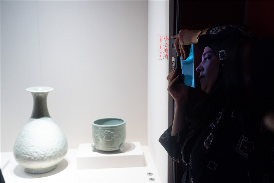 A celadon porcelain exhibition is held at the Palace Museum from July 15 in Beijing. A total of 833 pieces of celadon relics from museum collections of 42 countries demonstrate the development and progress of international cultural exchanges. [Photo/Xinhua]