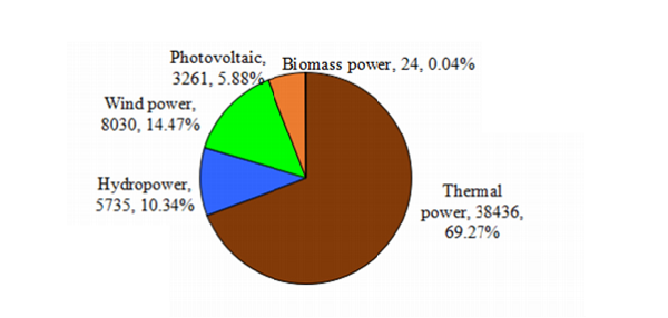 In 2014, the cumulative power generation in Xinjiang increased by 30.16 percent. A wind power generation capacity of 135.47 kWh accounted for 6.89 percent of the total power generation in the area. The proportion of wind power in the total power generation of Xinjiang has maintained a good momentum of economic development. By 2014, the total installed capacity of power supply in Xinjiang reached 55486 MW, of which 14.47 percent came from wind power (8030 MW).