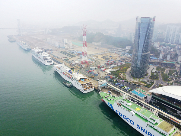 Five cruise ships berth at Xiamen International Cruise Home Port. [Photo provided to chinadaily.com.cn]