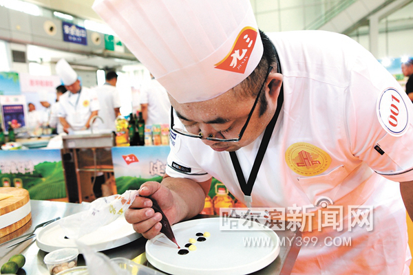 A chef makes desserts at a western food competition during the fifth China International Western Food Culture Festival. [Photo/MY399.COM]