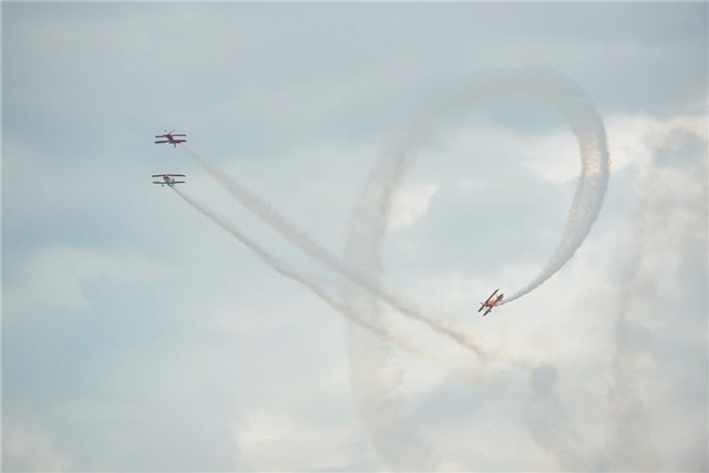 An aerobatic team performs during the 2019 Guizhou Huangguoshu Waterfalls Flight Conference in Anshun city, Guizhou province on July 19, 2019. [Photo provided to chinadaily.com.cn]