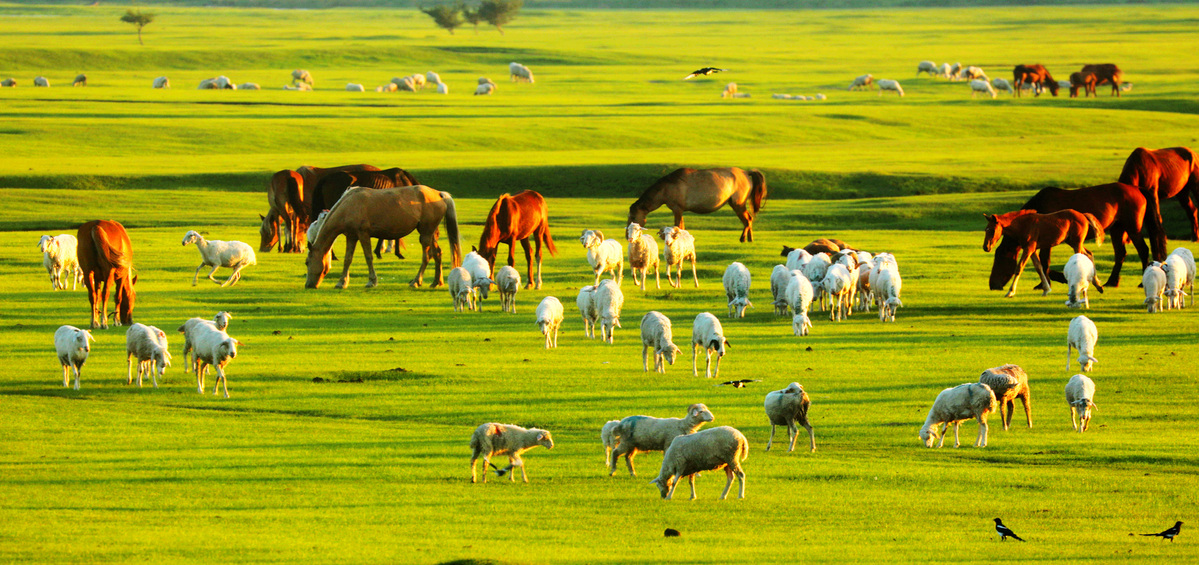 Livestock wander on the grasslands in Daur Autonomous Banner, Morin Dawa, North China's Inner Mongolia autonomous region. [Photo by Jiang Xiwu/chinadaily.com.cn]