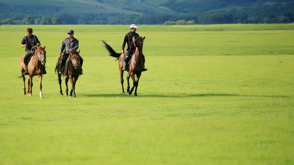 Tourists riding horses on the vast grassland in Daur Autonomous Banner of Morin Dawa in North China's Inner Mongolia autonomous region. [Photo by Jiang Xiwu/chinadaily.com.cn]