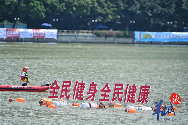 The swimmers started their journey at 14:10 and the one-kilometer course began from Zhongda Wharf to Xinghai Concert Hall on the Pearl River.