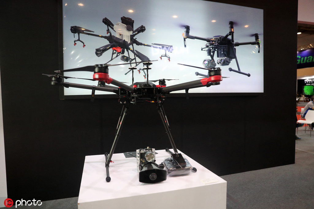 A DJI's drone on display at the 2019 China International Consumer Electronics Show in Qingdao, East China's Shandong province, July 19, 2019. [Photo/IC]