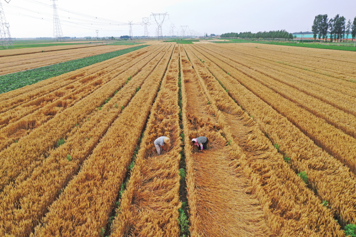 Villagers harvest wheat in Xiaolizhuang village, Tangshan city of North China's Hebei province, June 21, 2019. [Photo/Xinhua]