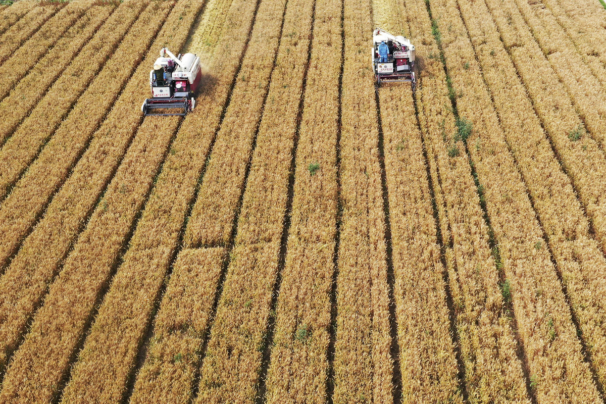 Villagers harvest wheat in Luojiatun village, Tangshan city of North China's Hebei province, June 21, 2019. [Photo/Xinhua]