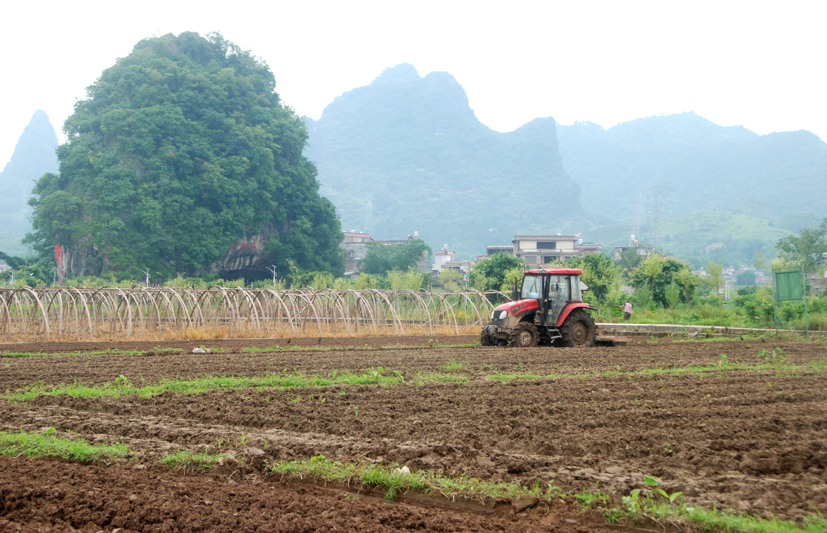 A farmer plows in field in Mafeng village, Hezhou city of South China's Guangxi Zhuang autonomous region, June 21, 2019. [Photo/Xinhua]