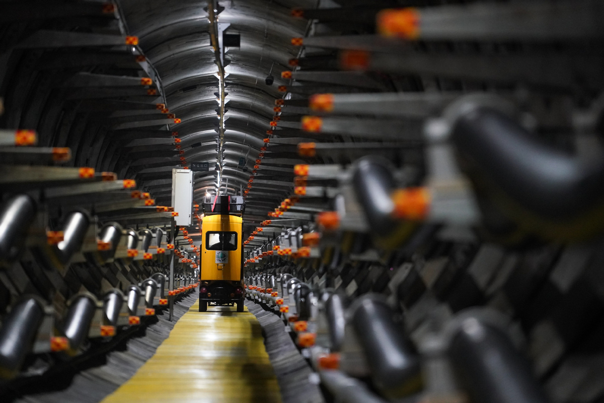 A smart inspection vehicle equipped with various detecting devices travels in a high-voltage cable tunnel in Nanjing, East China's Jiangsu province, May 22, 2019. [Photo/Xinhua]