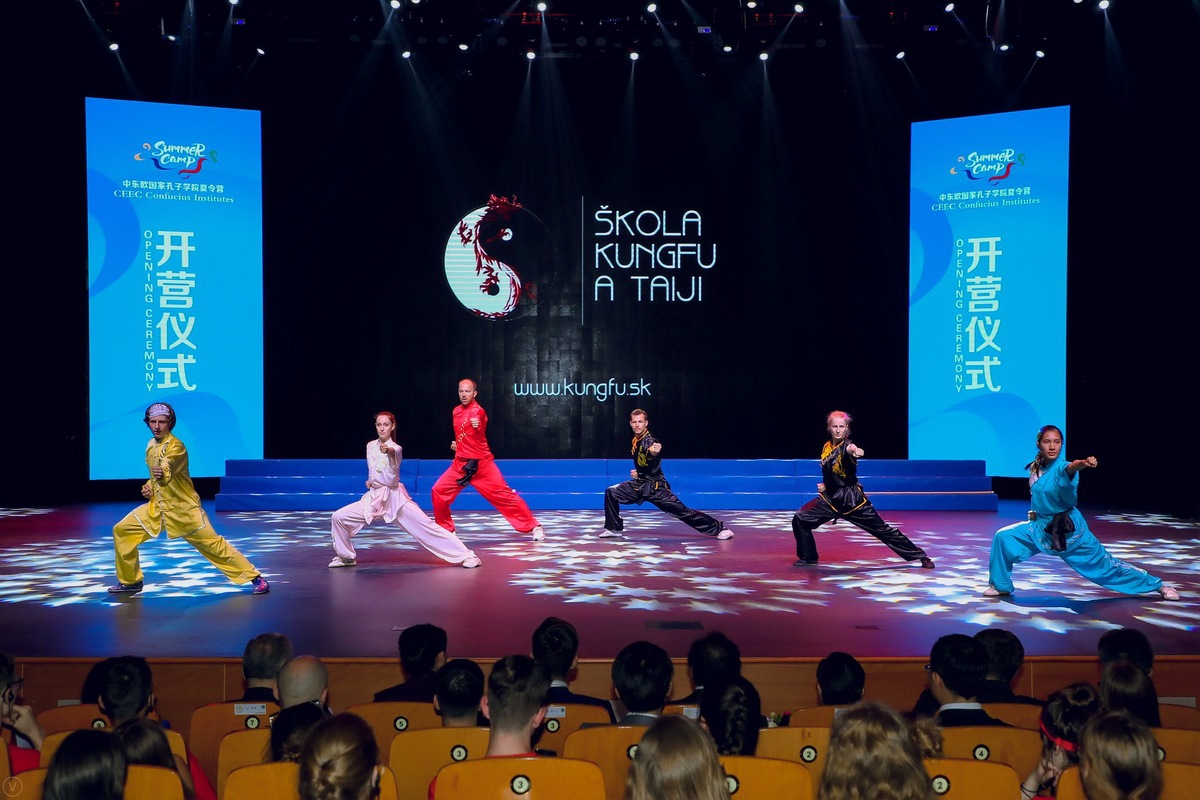 Students from Slovakia give a Kongfu performance at the opening ceremony of the 2019 CEEC Confucius Institute Summer Campon on July 22, 2019. [Photo provided to chinadaily.com.cn]