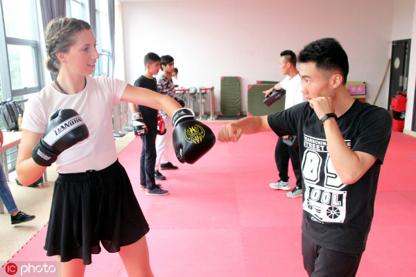 International students practice Chinese boxing at a cultural activity in Suzhou, Jiangsu province, May 30, 2018. [Photo/IC]