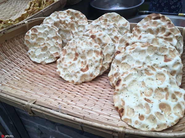 Stone buns (石子馍/Shi Zi Mo) are Chinese-style baked rolls with a long and profound history. It is often found in Lingbao and Lushi counties in Sanmenxia, in Central China's Henan province. They are made of flour, lard, vegetable oil, salt, pepper, Chinese prickly ash and other ingredients. Locals have a unique way of making them, baking them on special stones to give them a rough texture and a great flavor.