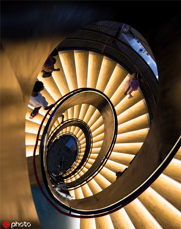 People walk down a spiral staircase at the newly opened shopping mall on July 9. [Photo/IC]