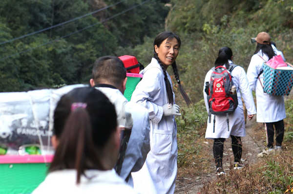 Among people there, she is better known as "basket doctor", because for about 30 months she and her colleagues have carried medicine, electrocardiographs, B ultrasonic and related medical machines as well as other devices in baskets on their backs to provide villagers medical services.