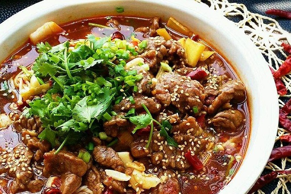 Poached sliced beef in hot chili oil was created by a famous chef named Fan Ji’an from Sichuan's Zigong city in the 1930s. Using sliced beef as its main ingredient, the dish has flowering Chinese cabbage, asparagus lettuce, and red and white radish as accessories.