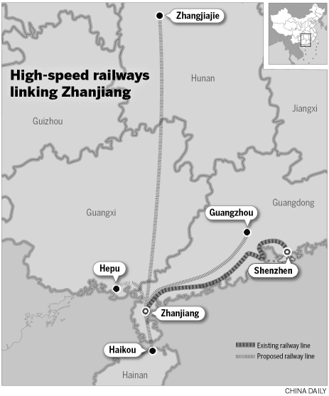 Zhanjiang, a port city in the western part of Guangdong province, is expected to become a new hub for high-speed railways after the city's high-speed railway development plan was approved by the central government last month, a senior city official said on Monday.