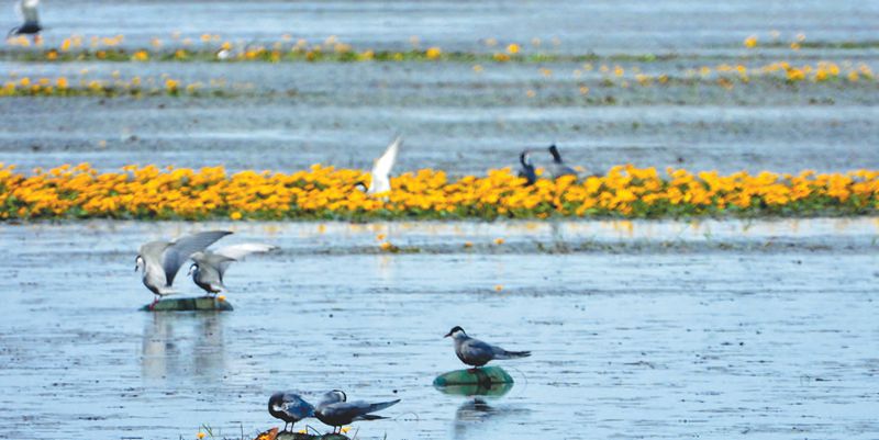 A flock of whiskered terns is spotted at Poyang Lake May 4, 2019. Poyang Lake is the largest freshwater lake in China. With summer approaching, it’s the best time for bird-watching lovers to view summer birds in the area. [Photo/jiangxi.gov.cn]