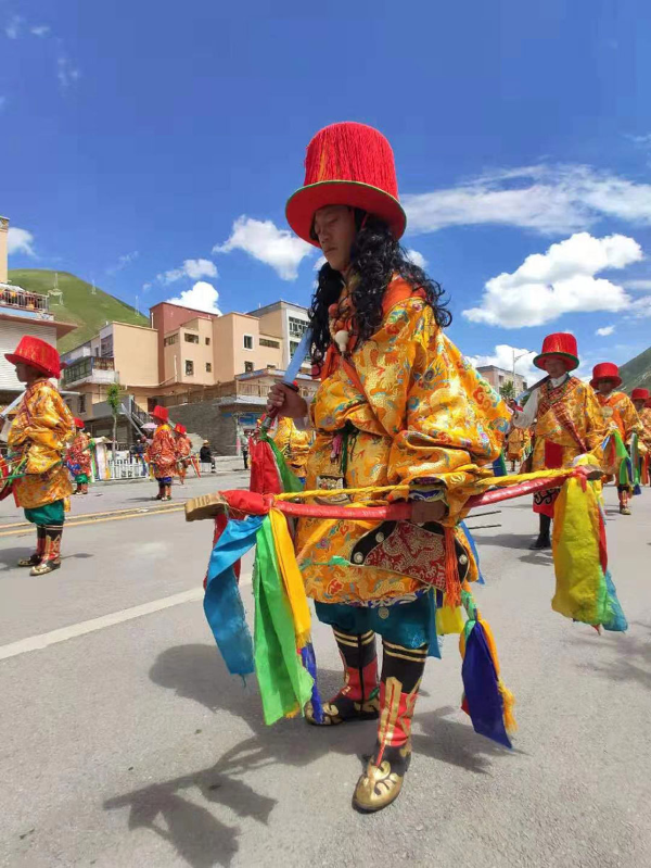A Parade of Tibetan arts and culture is held to entertain visitor to Yushu. [Photo provided to China Daily]