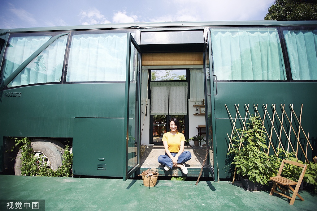 Liu Liu, a lover of plants but cash-strapped to rent an independent place, transformed an abandoned bus into a studio for her botanic handcrafts business in Hangzhou, East China's Zhejiang province.