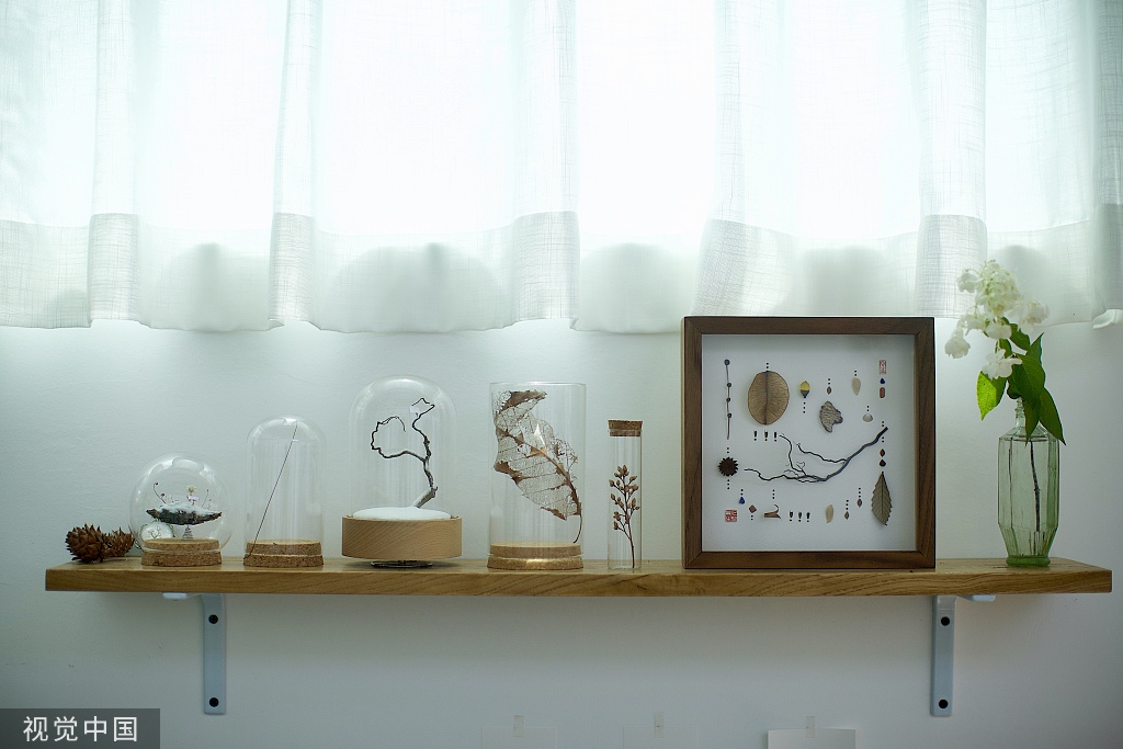 Ornaments made by plants and other materials are displayed in Hangzhou, East China's Zhejiang province, July 28, 2019. [Photo/VCG]