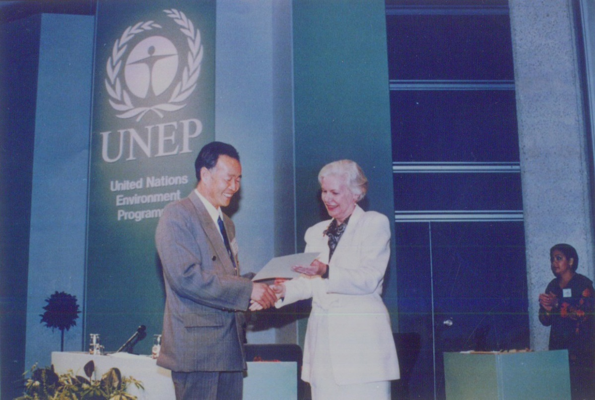Elizabeth Dowdeswell, then the executive director of the UNEP, issued the certificate to Zhang in London.