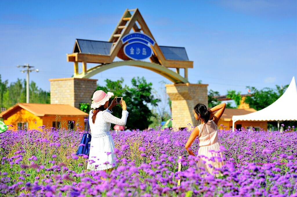 Visitors take photos at a garden of the Jinshadao ecological restoration area in Zhongwei, Ningxia Hui autonomous region. [Photo provided to chinadaily.com.cn]