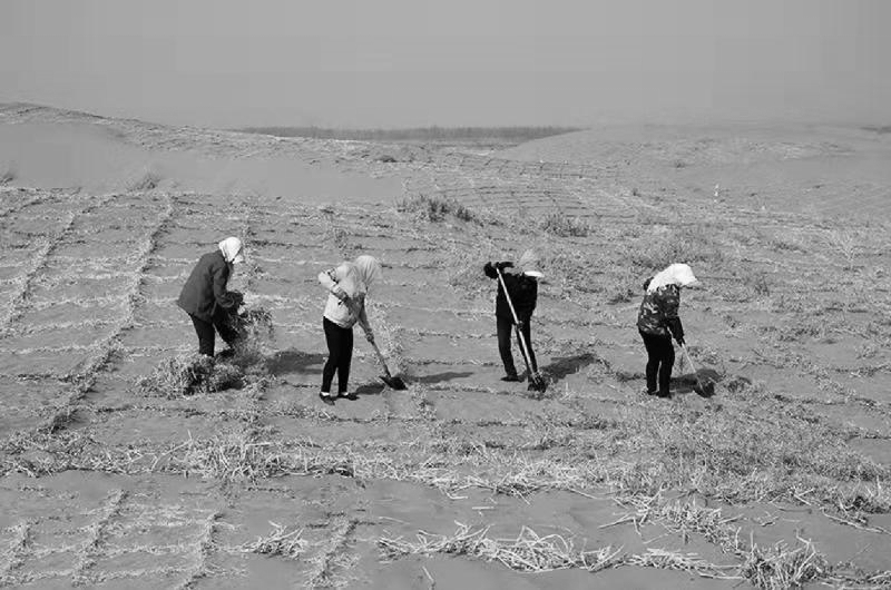 Local people in Zhongwei put in effort to control the sand. [Photo provided to chinadaily.com.cn]