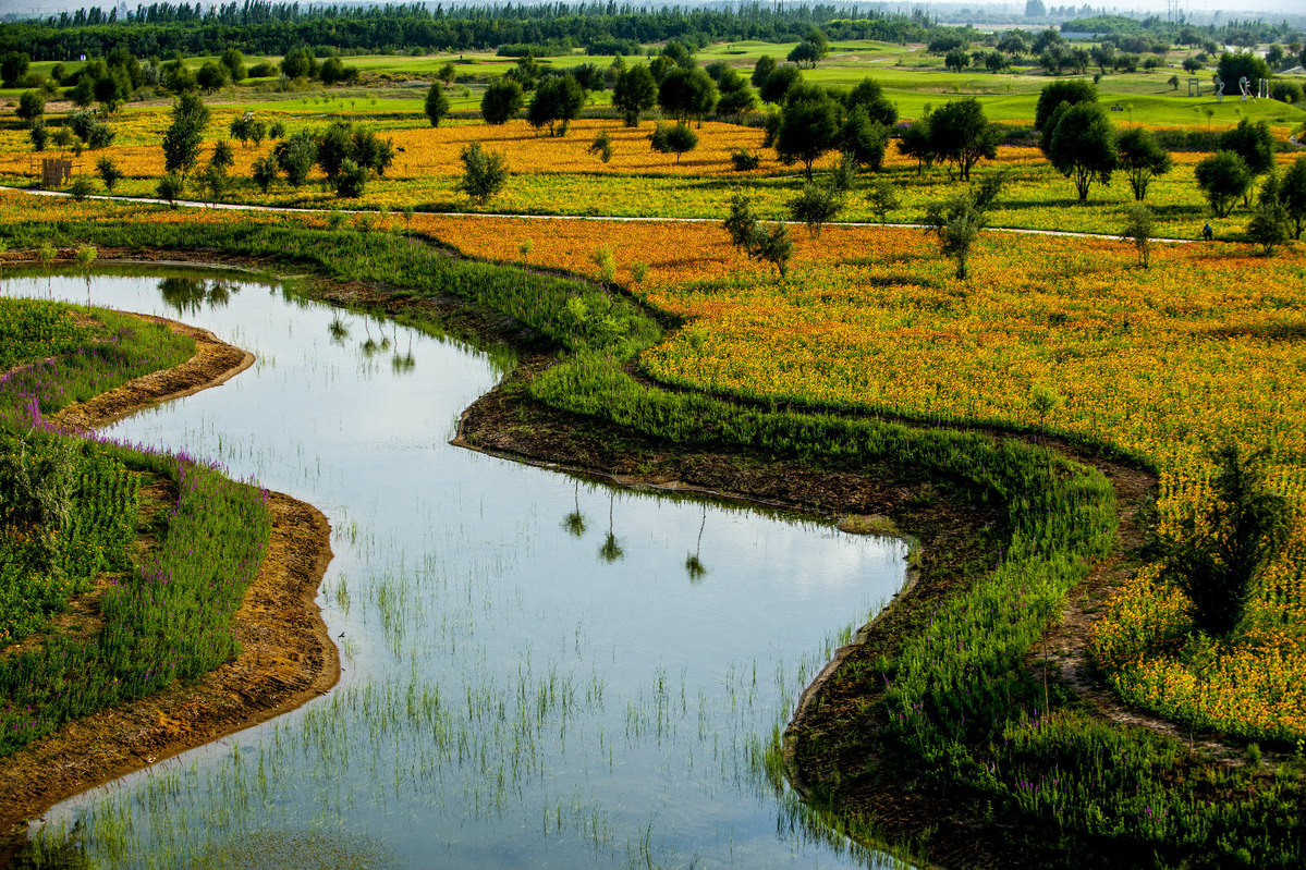 The former desert area has been turned into a green oasis. [Photo provided to chinadaily.com.cn]