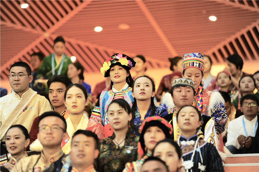 Attendees at the opening ceremony of the fourth Silk Road (Dunhuang) International Cultural Expo and the ninth Dunhuang Tour-Silk Road International Tourism Festival held in Hezuo city, capital of Gannan Tibetan autonomous prefecture in Northwest China's Gansu province, on Tuesday.[Photo by Li Yang for Chinadaily]