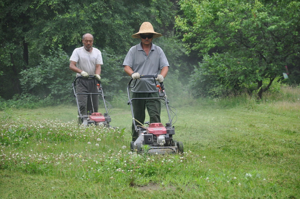 Workers tidy up grass at a park in Jilin, Northeast China's Jilin province. [Photo/IC]