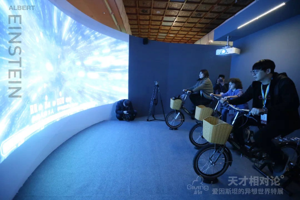 Interactive installations in the exhibition that illustrate Einstein's scientific theories on light speed and the relationship of space and gravity. [Photo provided to chinadaily.com.cn]