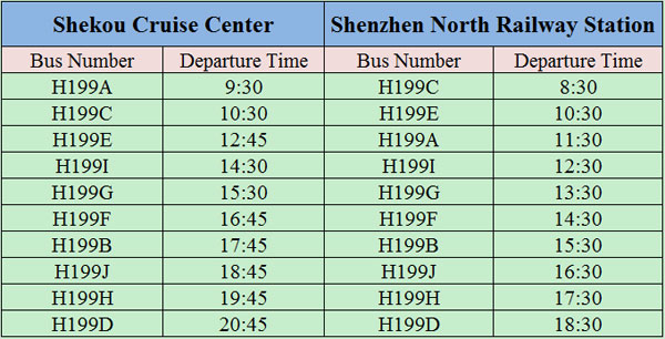 Ten round-trip shuttle buses are scheduled every day from the cruise center to Shenzhen North Railway Station, while there are five round-trip shuttle busses to the airport. It costs 10 yuan ($1.44) for a one-way ticket.