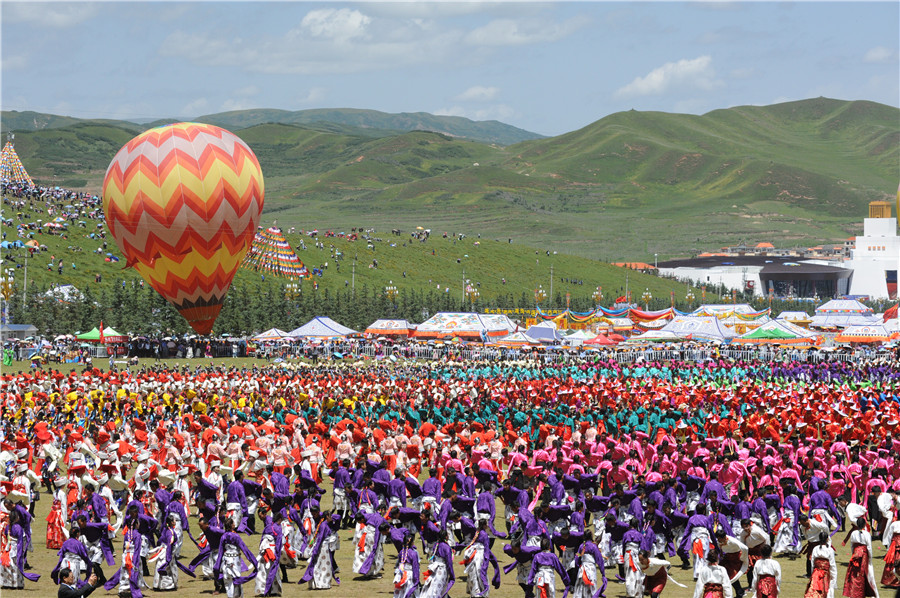 Performances drew large crowds during the opening ceremony of the fourth Silk Road (Dunhuang) International Cultural Expo and the ninth Dunhuang Tour-Silk Road International Tourism Festival held in Hezuo city, capital of Gannan Tibetan autonomous prefecture in Northwest China's Gansu province, on Tuesday.[Photo by Li Yang for Chinadaily]