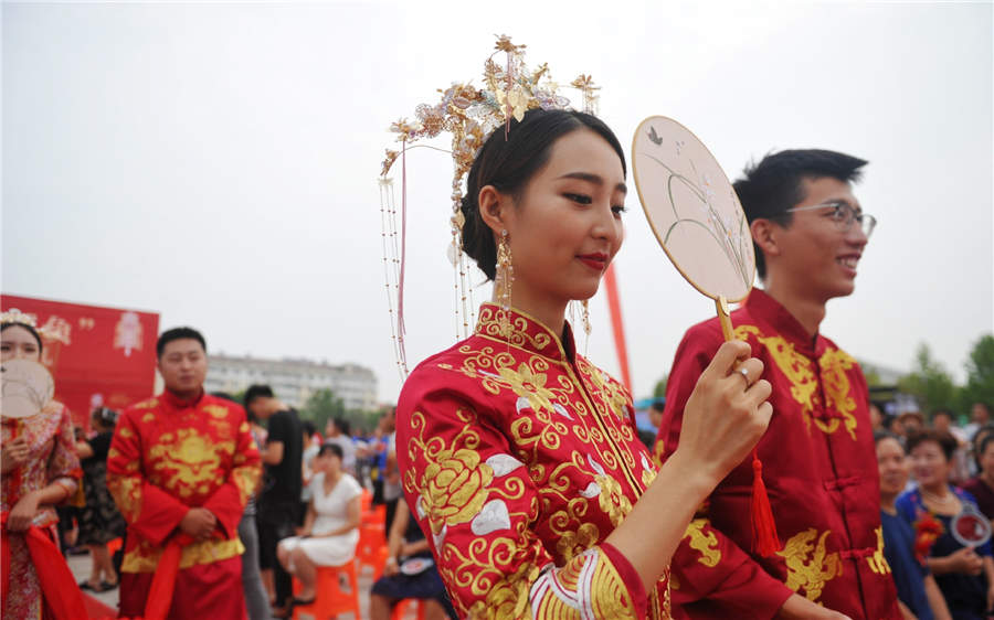 A group wedding is held in Huanghua city, Hebei province, Aug 6, 2019. [Photo/Xinhua]