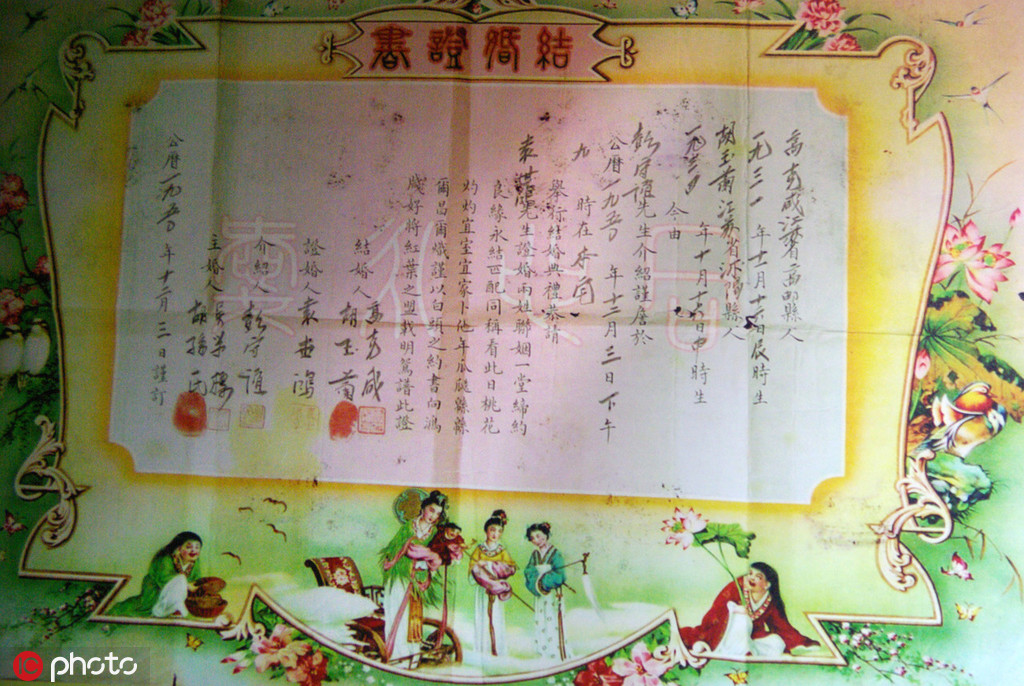 A marriage certificate from Nanjing, East China's Jiangsu province, in 1950. Photo taken on Sept 30, 2009. [Photo/IC]