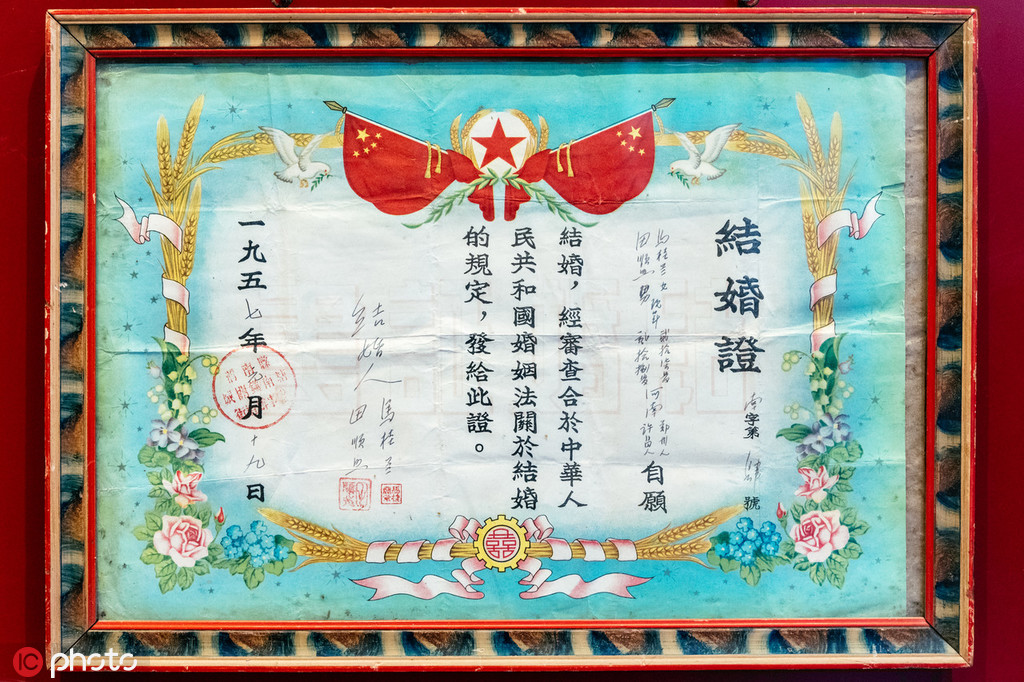 A marriage certificate from Weinan, Northwest China's Shaanxi province, in 1957. Photo taken on Feb 10, 2019. [Photo/IC]