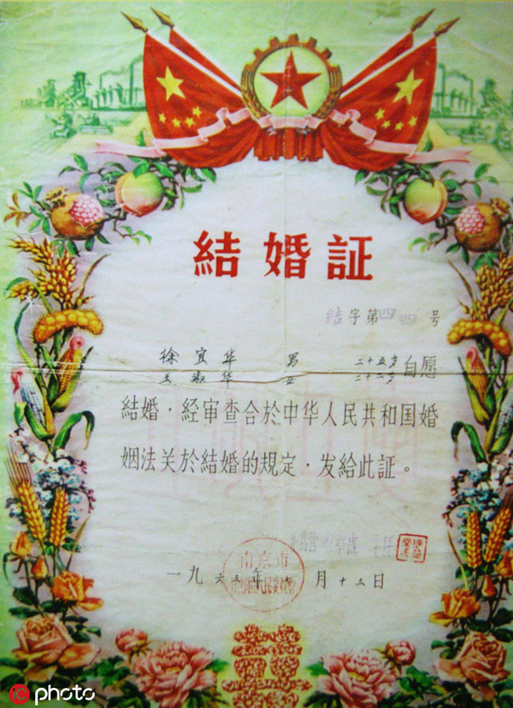 A marriage certificate from Nanjing, East China's Jiangsu province, in 1963. Photo taken on Sept 30, 2009. [Photo/IC]
