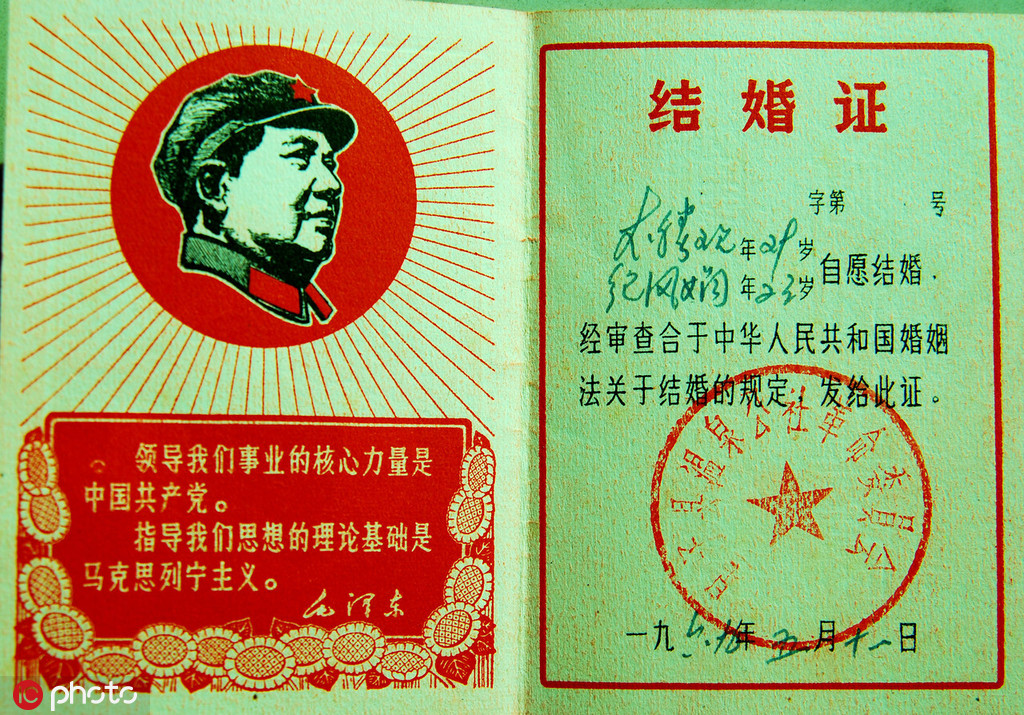 A marriage certificate from Shanghai in 1969. Photo taken in 2008. [Photo/IC]