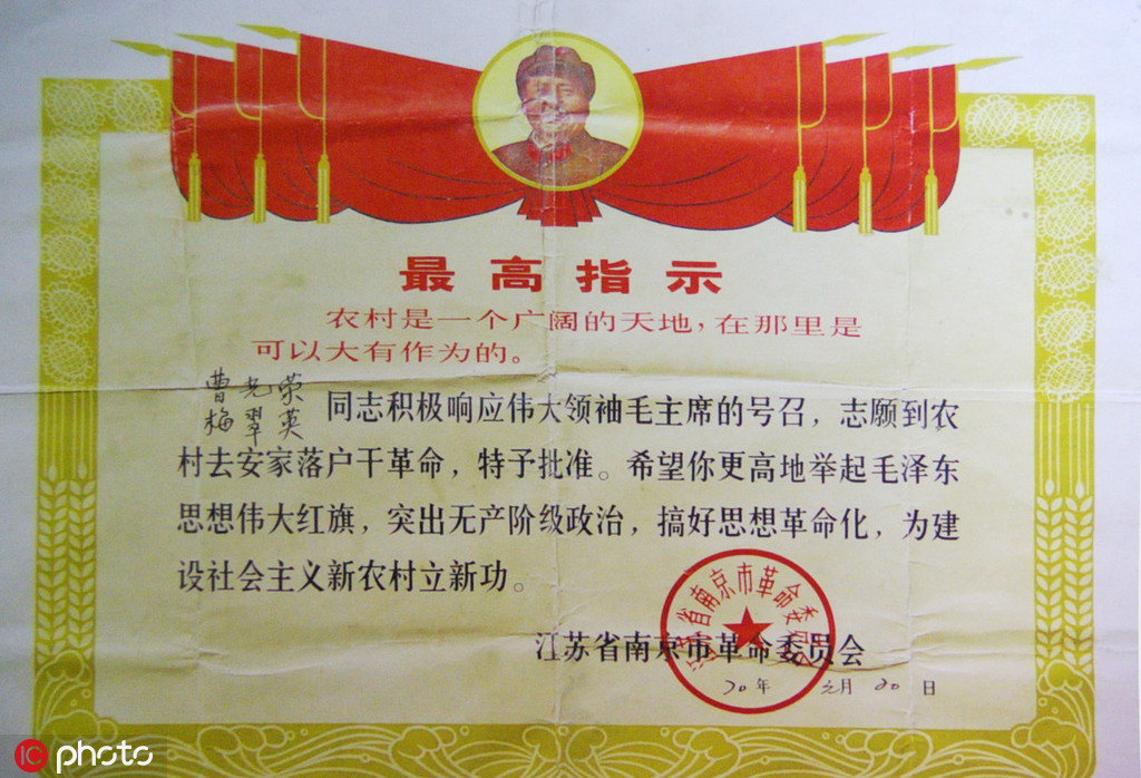 A marriage certificate from Nanjing, East China's Jiangsu province, in 1970. Photo taken on Sept 30, 2009. [Photo/IC]