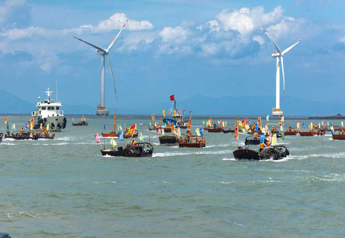 Fishing boats head out to sea in Shapu town, Fuqing city of East China's Fujian province, Aug 3, 2019.[Photo by Chen Wenfan and Chen Naiying]