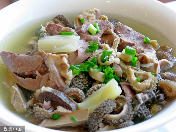 Cooked chopped entrails of sheep is a popular traditional snack in Ningxia. The entrails of sheep are not for everyone, but after careful preparation by a chef they can become a delicacy. In Ningxia Hui autonomous region, it is not only a local snack, but also a traditional dish popular at banquets. Drink a mouthful of fresh soup then eat a mouthful of chopped entrails and its flavor will be savory and mellow.