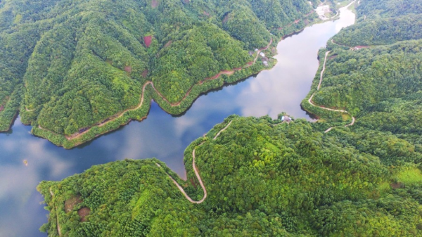 Aerial photo reveals refreshing lake view in Chongqing