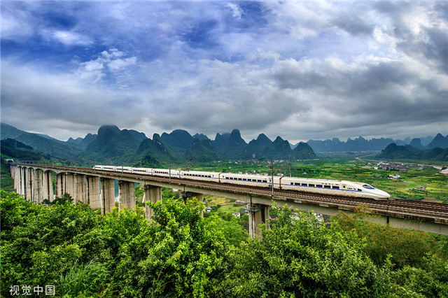 In recent years, a wide range of transport projects have been in full swing, including the Guiyang-Nanning, Nanning-Chongzuo and Fangchenggang-Dongxing high-speed railways, and a number of expressways such as the Yangshuo-Luzhai, Guigang-Long'an and Hezhou-Bama routes have been completed.