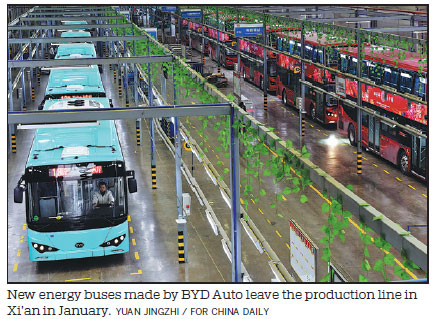 To date, nearly 60 percent of buses in Xi'an are powered by electricity, while the three-year action plan "to win the battle for a blue sky" which was issued by the provincial government, proposed that all buses in cities on the Guanzhong Plain should be new energy vehicles by late next year.