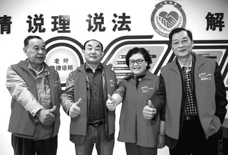 Initiated five years ago by retired local judges Ye Zhu'an and Xia Jichu, the clinic has now expanded to four retired judges and two lawyers and has so far helped resolve over 180 community disputes.