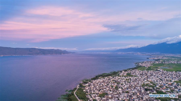 Aerial photo taken on July 5, 2018 shows the scenery of Erhai Lake in Dali, Southwest China's Yunnan province. [Photo/Xinhua]