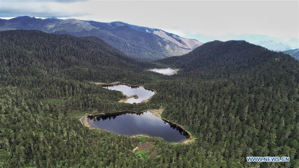 Aerial photo taken on June 8, 2019 shows the scenery of water basins on Laojun Mountain in Lijiang, Southwest China's Yunnan province. [Photo/Xinhua]
